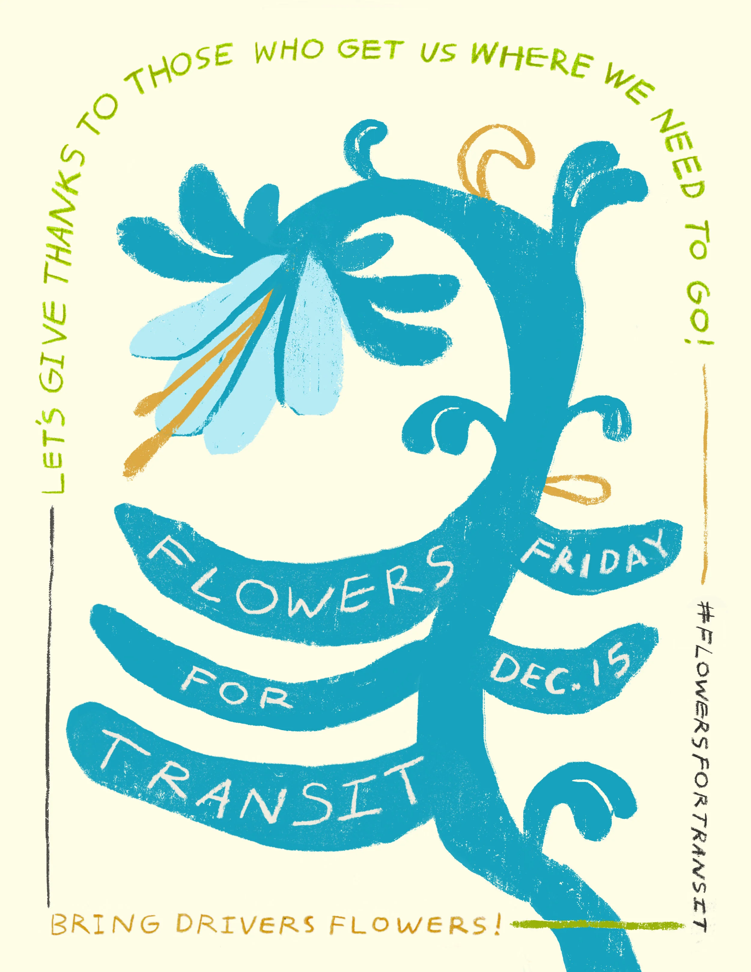 Callen Thompson, a San Francisco based textile and fine artist, reached out to me to create a poster for Flowers for Transit - a completely made up day where you just bring flowers to hardworking drivers!