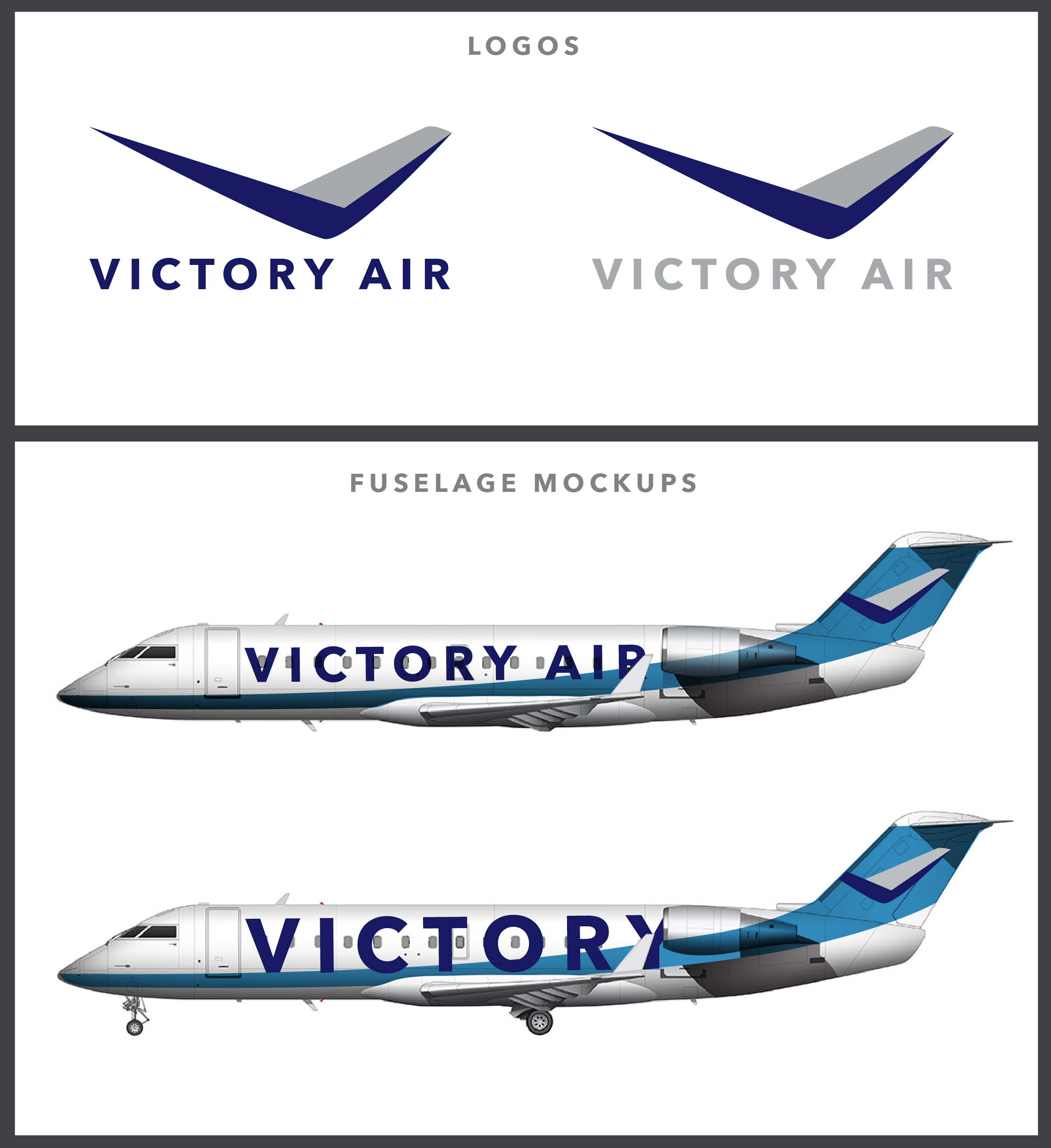 I worked with charter airline Victory Air to create a logo, style guide, and plane wrap design that was classic yet modern and conveyed professionalism and efficiency.